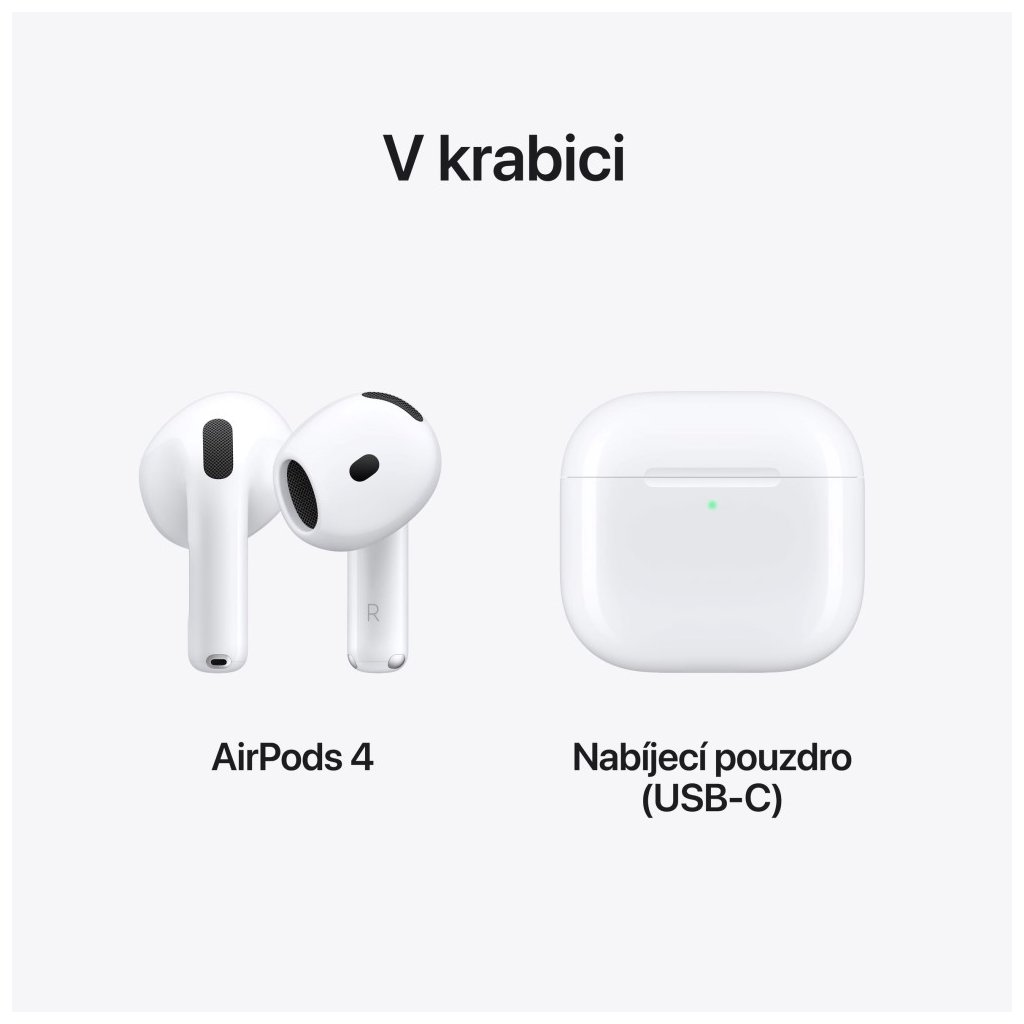 Optimalizované nabíjecí pouzdro je ve srovnání s předchozí generací o víc než 10 procent menší, aniž by tím utrpěla jeho nabíjecí kapacita. A AirPody 4 s aktivním potlačováním hluku mají bezdrátové nabíjecí pouzdro a vestavěný reproduktor, se kterým ho pomocí aplikace Najít snadno lokalizuješ.
